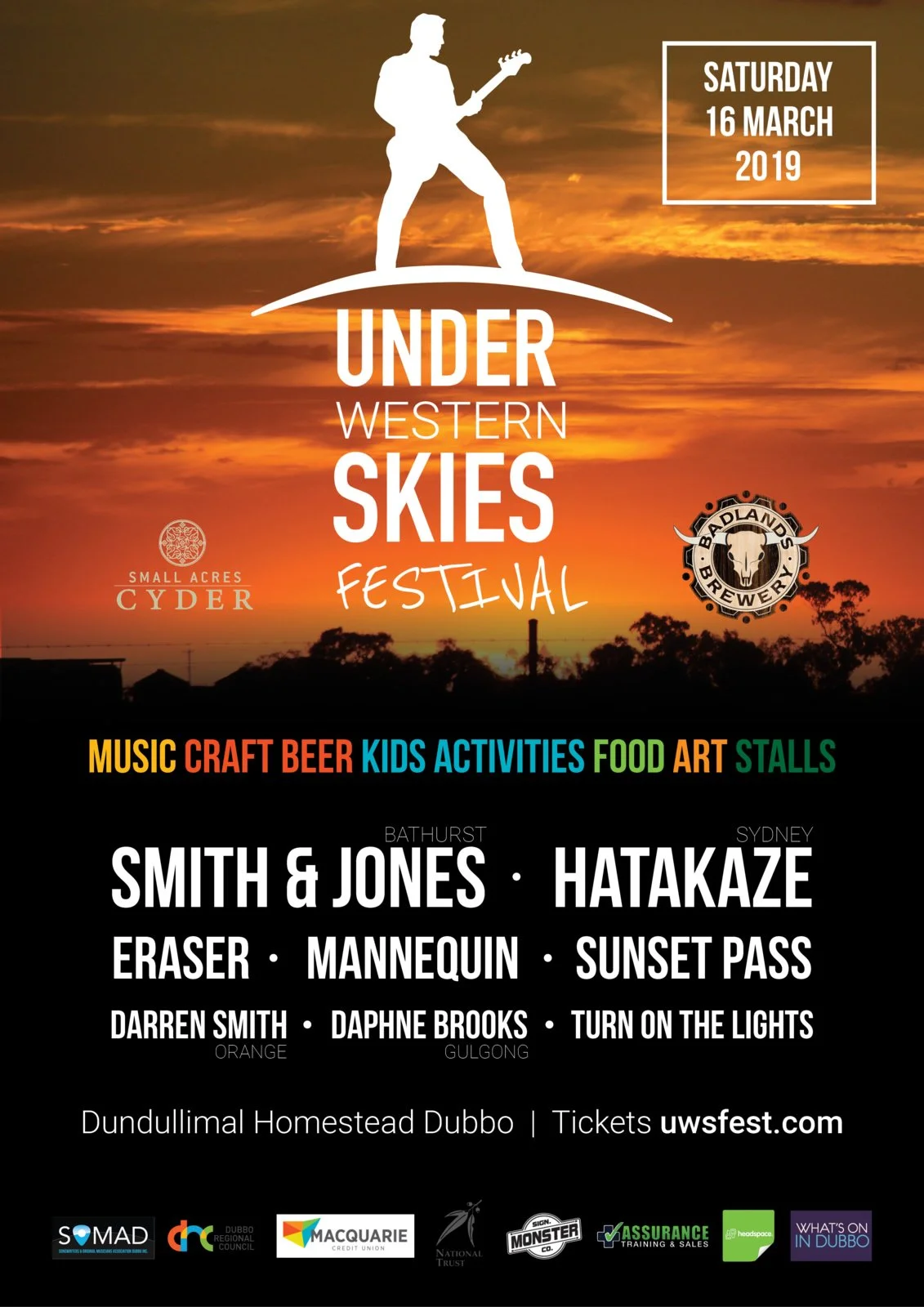 Under Western Skies was a festival run by SOMAD celebrating the original music of the Central West with events in 2019, 2021, 2022, 2023 and 2024. No future events are currently planned.